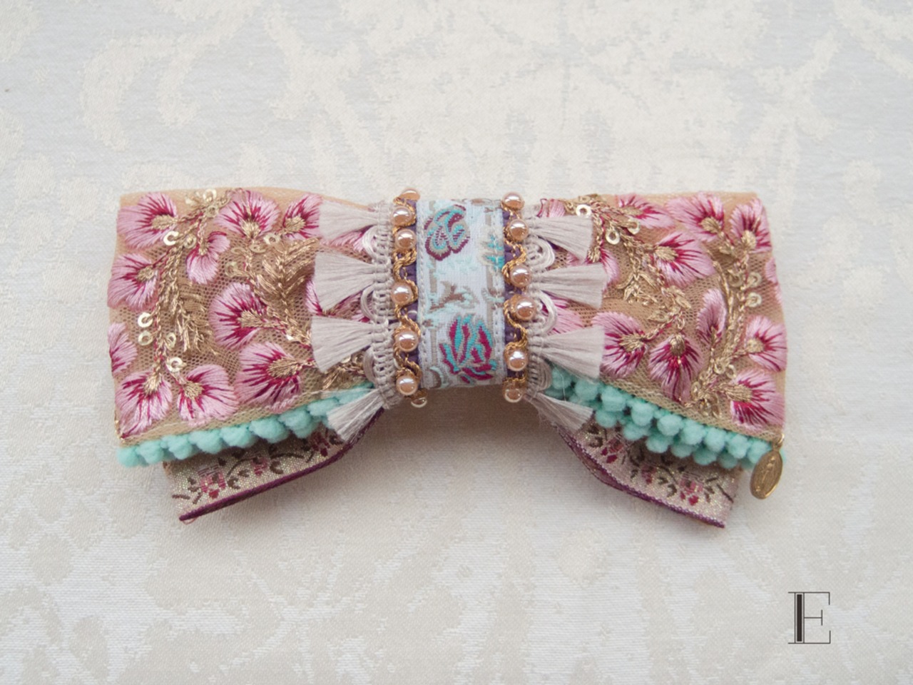 異国情緒あふれる刺繍リボンを使ったバレッタ。